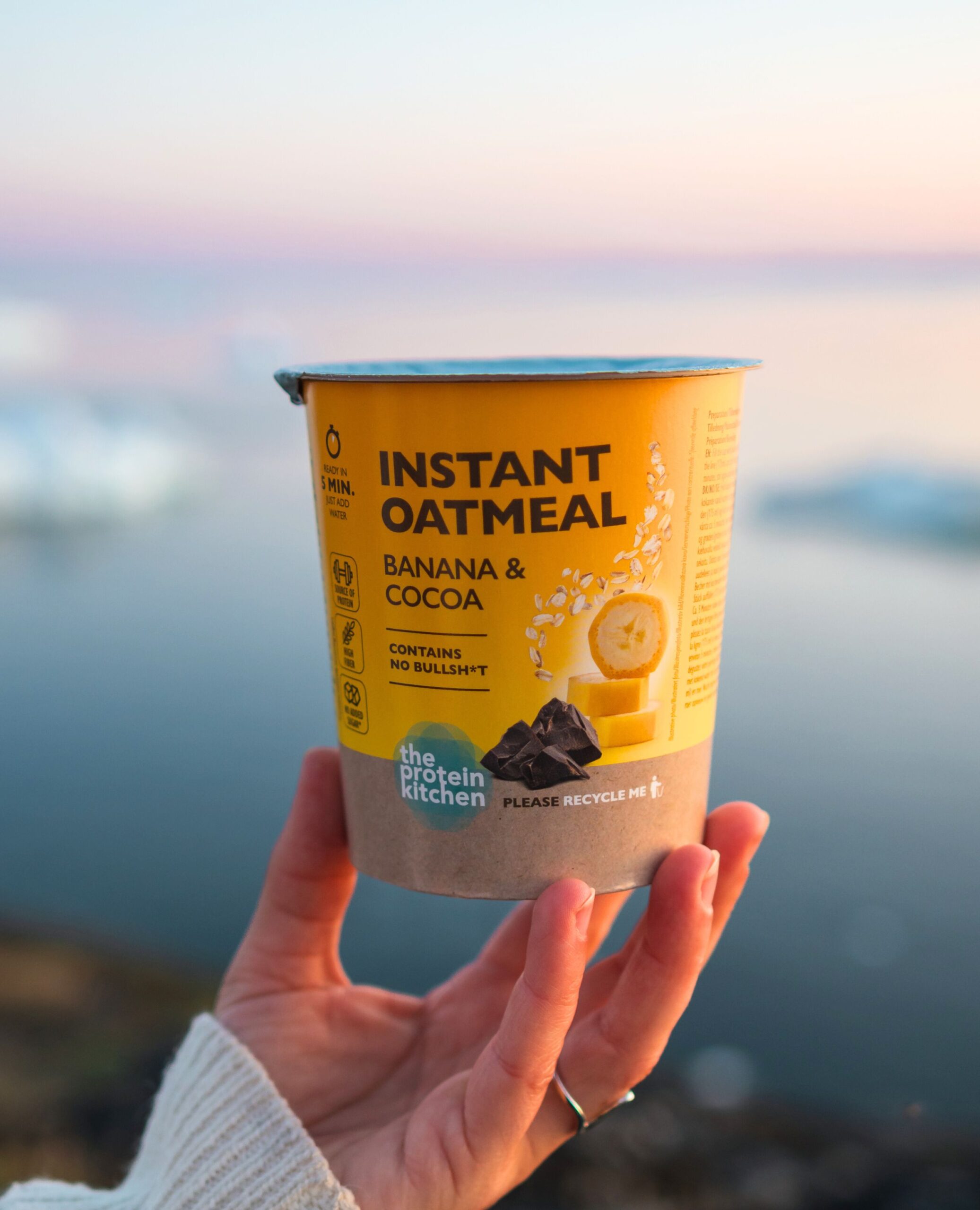 Instant havregrød med banan og kakao.